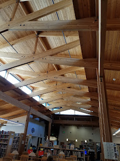 The second floor is breathtaking, with beautiful, exposed wood framing all along the ceiling that casts a rich glow across the entire area. Oh how I wanted to stay. Unfortunately, the library closed at five that day, and I'd only arrived at 4:30. Bad time management, I know, but blame the plague still jamming up my sinuses and skewing my perspective ever so slightly into the twilight zone.