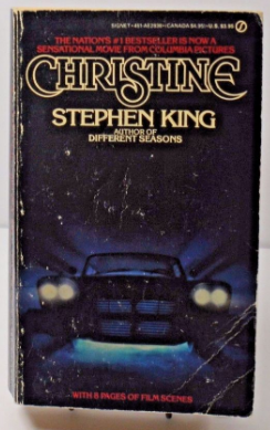 A couple of years later, I was well into my King fandom when my aunt Sherry gifted me a worn-to-hell copy of Christine we just happened to find while garage sale-ing one weekend. The cover was nearly falling off and it looked as old and dilapidated as that first, early-eighties shot of Christine, but I didn't care. I was greedy for new King and thrilled to get my hands on it.